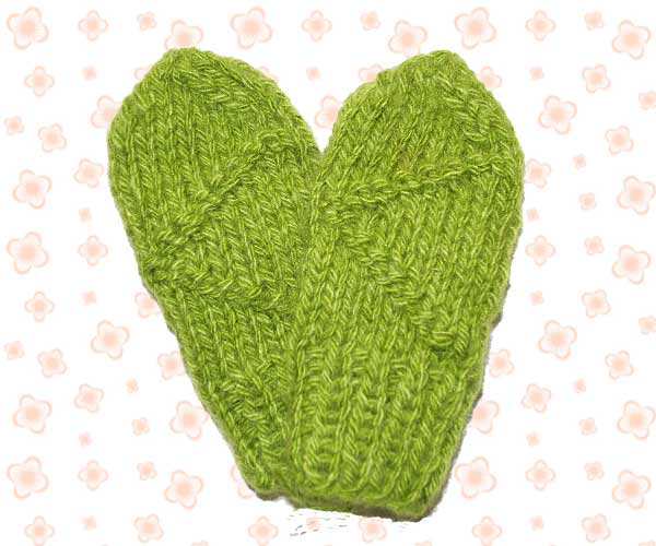 Варежки детские, бесшовные. Ручная работа. Цвет: зеленый. Состав: 90% шерсть, 10% акрил. Размер: обхват кисти 14 см.