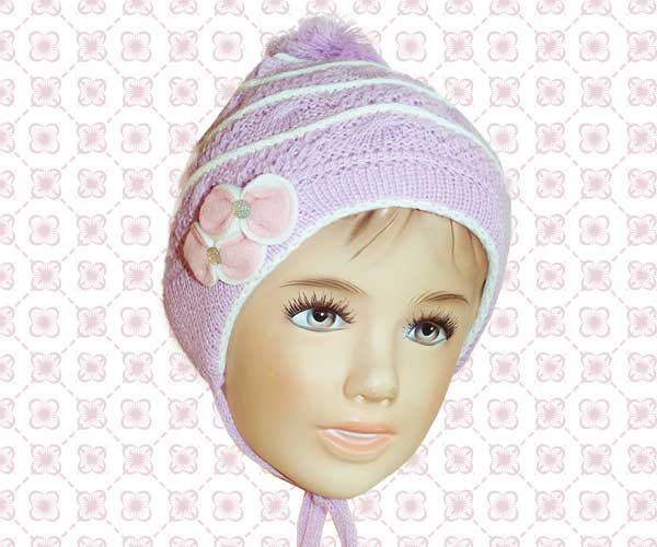 Шапочка для девочки. Двойная, плотной вязки. Цвет: сиреневый. Состав: 70% хлопок, 30% полиэстер.Размер: 52-54