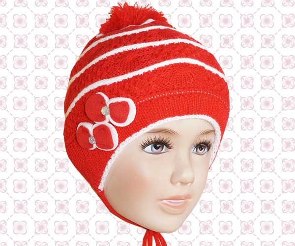 Шапочка для девочки. Двойная, плотной вязки. Цвет: красный. Состав: 70% хлопок, 30% полиэстер.Размер: 52-54