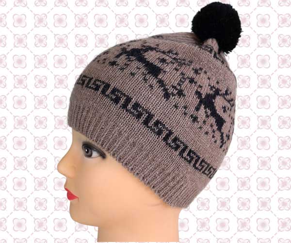 Шапка подростковая, плотной вязки. Цвет: коричневый. Орнамент:"Олени" черный Состав:100% шерсть. Размер:55-57