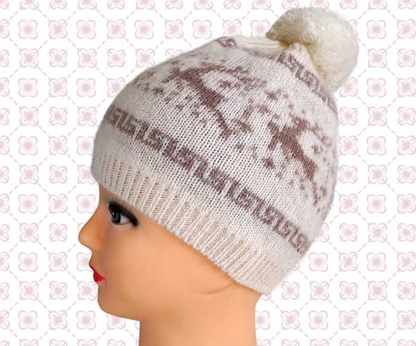 Шапка подростковая, плотной вязки. Цвет: белый. Орнамент:"Олени" коричневый. Состав:100% шерсть. Размер:55-57