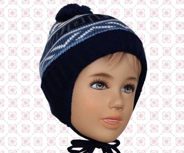Шапочка для мальчика с флисом. Цвет: темно-синий. Состав:70% хлопок, 30% полиэстер. Размер 52-54