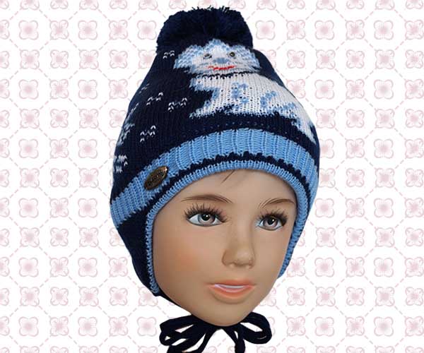 Шапочка для мальчика "Щенок", двойная. Цвет: темно-синий. Состав:70% хлопок, 30% полиэстер. Размер 52-54