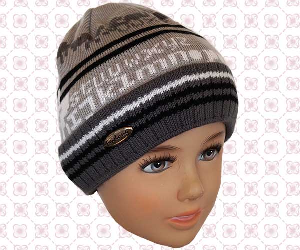 Шапочка для мальчика.Цвет: серый. Состав:70% хлопок, 30% полиэстер. Размер 52-54