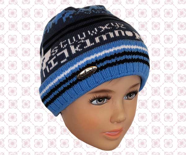 Шапочка для мальчика.Цвет: серый с голубым. Состав:70% хлопок, 30% полиэстер. Размер 52-54