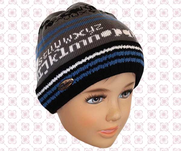 Шапочка для мальчика.Цвет: серый с черным. Состав:70% хлопок, 30% полиэстер. Размер 52-54