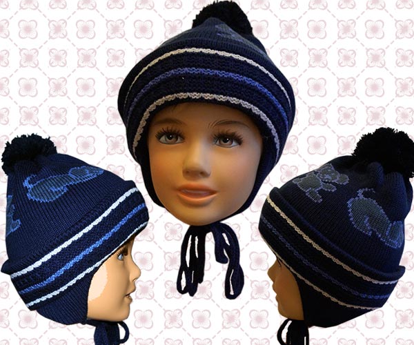 Шапочка детская для мальчика. Цвет: темно-синий. Состав: 60% шерсть, 40% акрил.Двойная, плотной вязки. Размер: 55